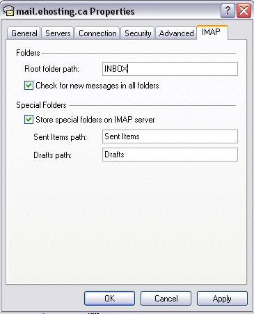 11. Click on IMAP tab. Under Folders - Root folder path, write INBOX. Make sure that the words are in capital letters followed by a period(.). Click Apply and then OK to exit this dialogue box.